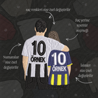 Bu tasarımda sadece karakterlerin saç renkleri ve formalarında yazan isimler ve numaralar kişiselleştirilebilir. Kendi fotoğrafınızla ürün oluşturmak için Fotoğraf Nakışları kategorimizi ziyaret edin.